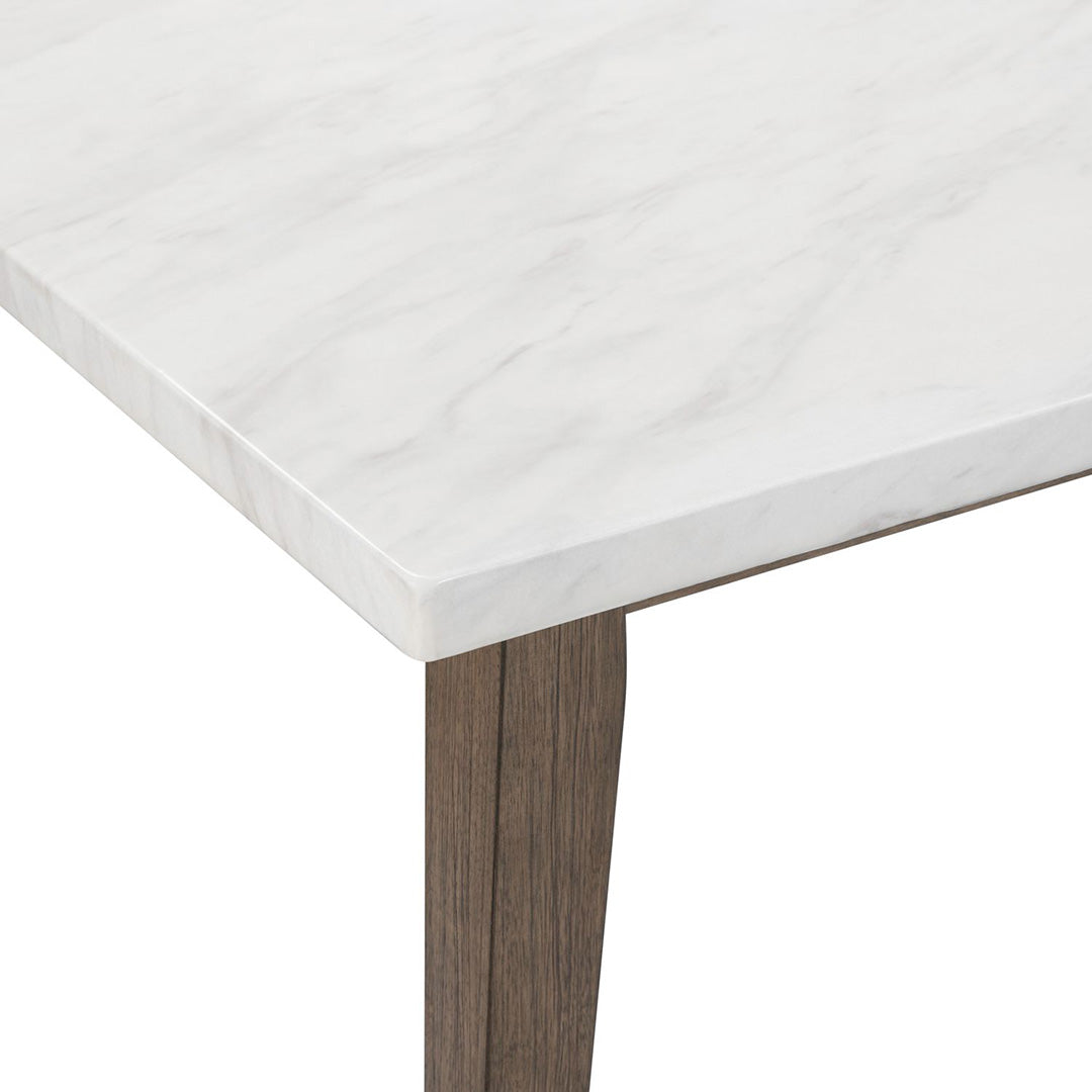 The Edison Dining Set delivers a modern-meets-timeless aesthetic that elevates any dining space with style and comfort. Featuring a rectangular dining table with a white faux marble top and warm brown base, it pairs sleek contemporary lines with natural texture for a refined yet welcoming look. Four coordinating side chairs complete the set, each crafted from rubberwood solids and fully upholstered in a soft gray fabric with a gently contoured back and splayed legs. Rated at “Better” quality level, the Edison Dining Set is perfect for everyday meals or intimate gatherings.