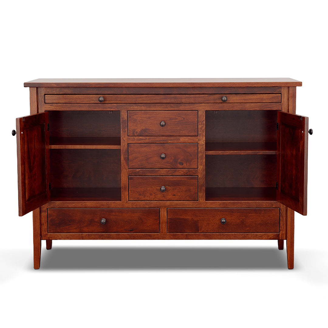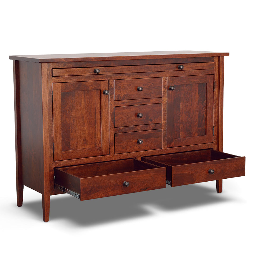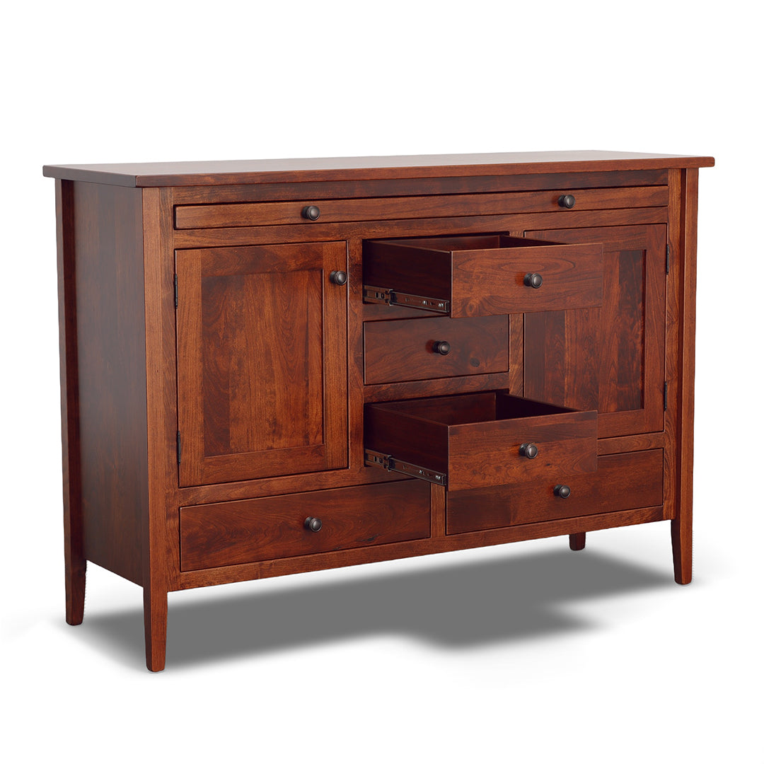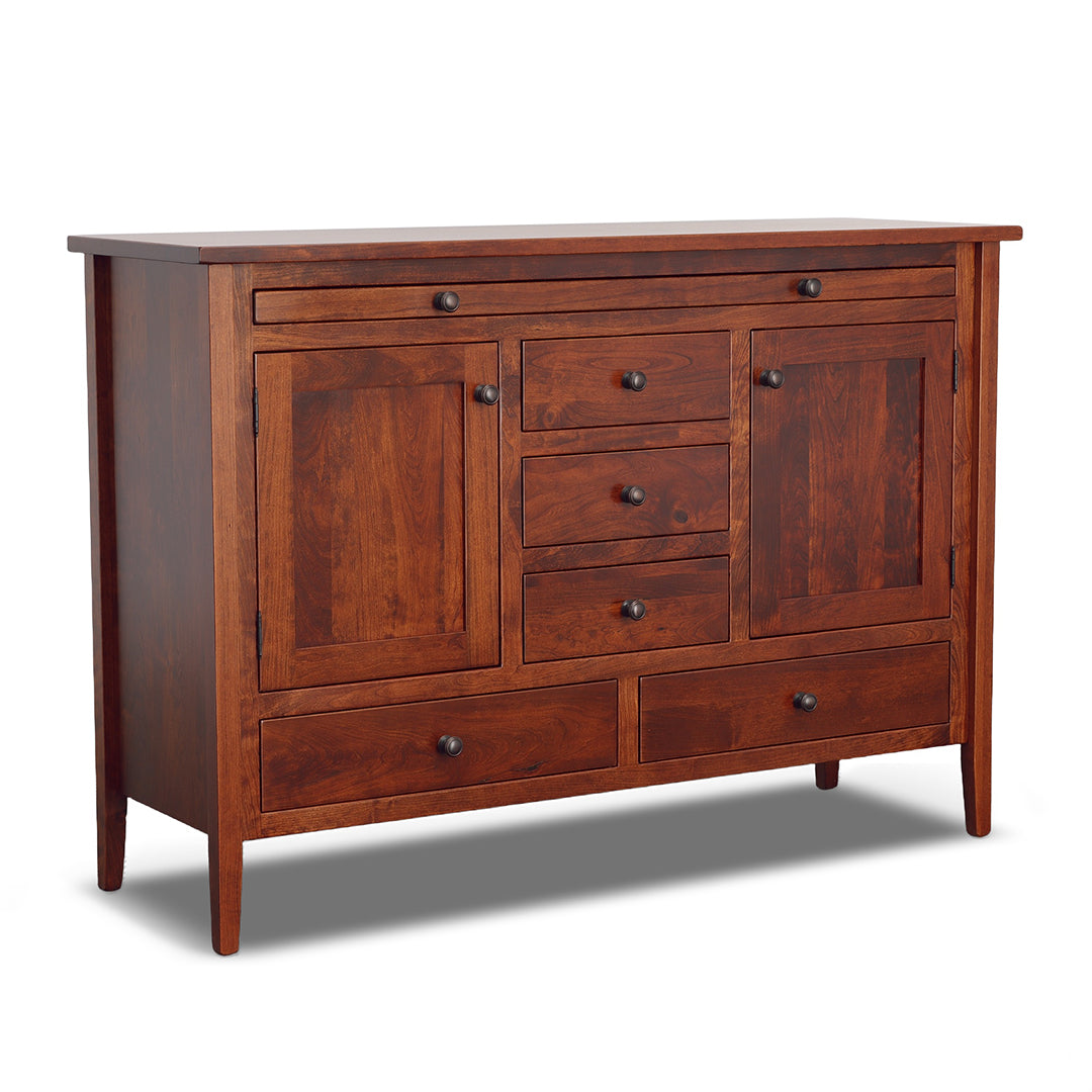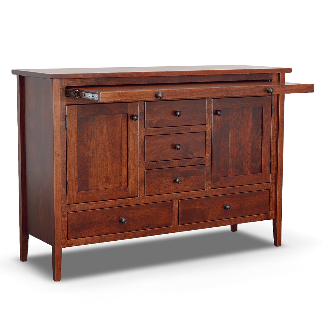Designed by expert Amish craftsman in Ohio, Trailway Furniture takes pride in delivering products of the highest quality and standard. Made with locally sourced solid hardwood, the design is sturdy and made to last for generations. This server features multiple storage options and a convenient pull out tray on smooth gliding ball bearings that can hold up to 50 lbs. Choose from a wide array of hardware and finish options in our showrooms. One of our design experts can help guide you through the entire Fairfield Trail collection as well as other selections from Trailway!