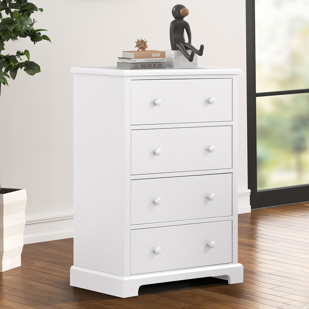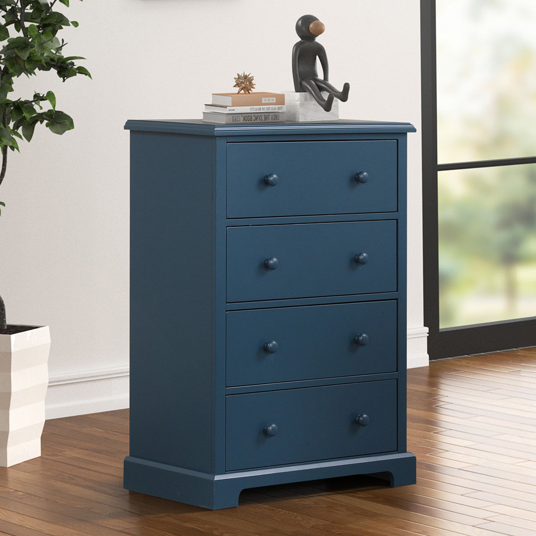 The Bunkmates Chest adds versatile style and practicality to any space, effortlessly shifting from a playful youth setup to a polished guest room staple. Crafted from solid pine and veneers, it’s wrapped in a six-step durable finish—available in white, gray, brown, or blue to match any room’s mood. Four smooth rolling drawers provide practical storage for clothes, toys, or bedding, while matching round knobs add a cohesive, polished touch. Rated at a “Good” quality level, the Bunkmates Chest ensures durability at a great value.