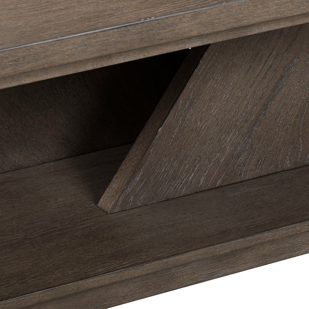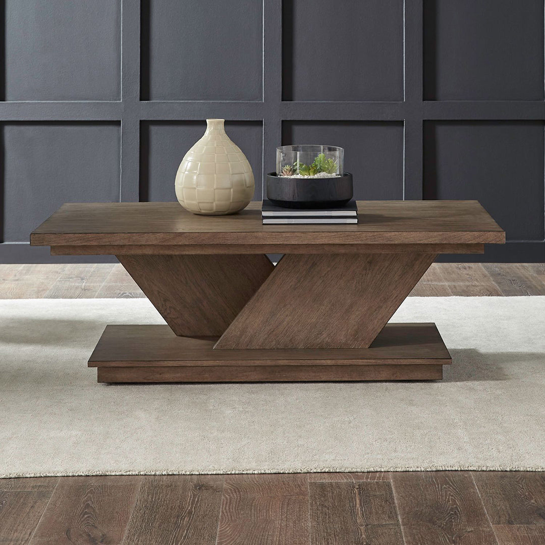 The Aspen Sky Cocktail Table brings modern structure to your living room with its bold, architectural design. Crafted from solid rubberwood with split heart white oak veneers, it's finished in a weathered saddle brown that adds warmth and depth. A contemporary criss cross base and plinth-style bottom give the piece a sculptural look, while the open lower shelf offers a chic spot to display décor or keep essentials within reach. Smooth-rolling casters make it easy to reposition—perfect for dynamic seating arrangements or reclining furniture setups. Rated at a “Better” quality level, the Aspen Sky Cocktail Table strikes a smart balance between style and durability.