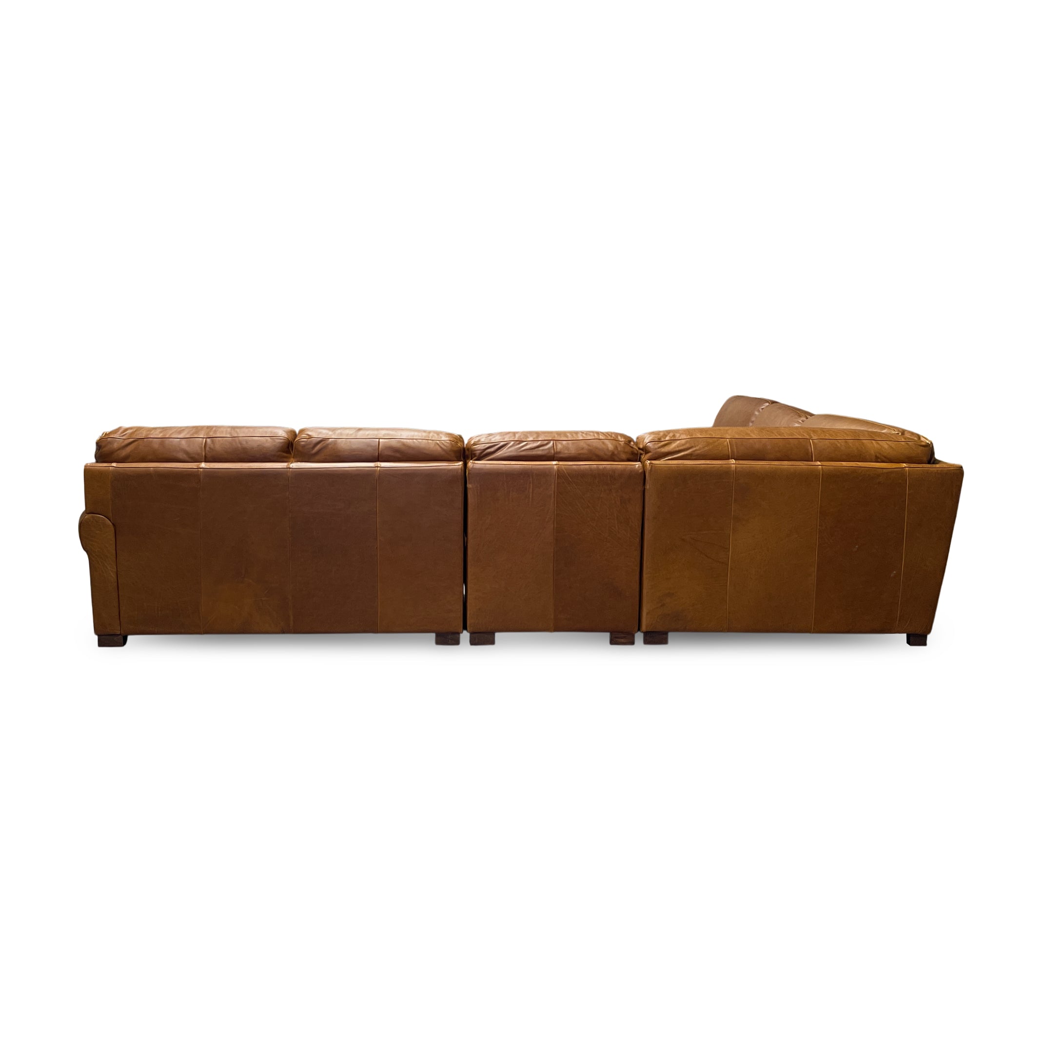Crafted with a sense of heritage and sophistication, the Wyoming Sectional delivers luxurious comfort. Made entirely from buttery soft, 100% top grain Italian leather, this sectional offers deep seating, plush double-channel backs, and 2.0 high-resiliency foam cushions—all supported by durable webbing suspension for lasting structure and support. Rolled arms and a timeless silhouette add a classic touch, making this piece feel both stately and inviting in any living space. It features padded sides and backs, refined stitching and a generous scale that encourages full relaxation. Rated at a “Best” quality level, the Wyoming Sectional is designed to anchor your home for years to come.