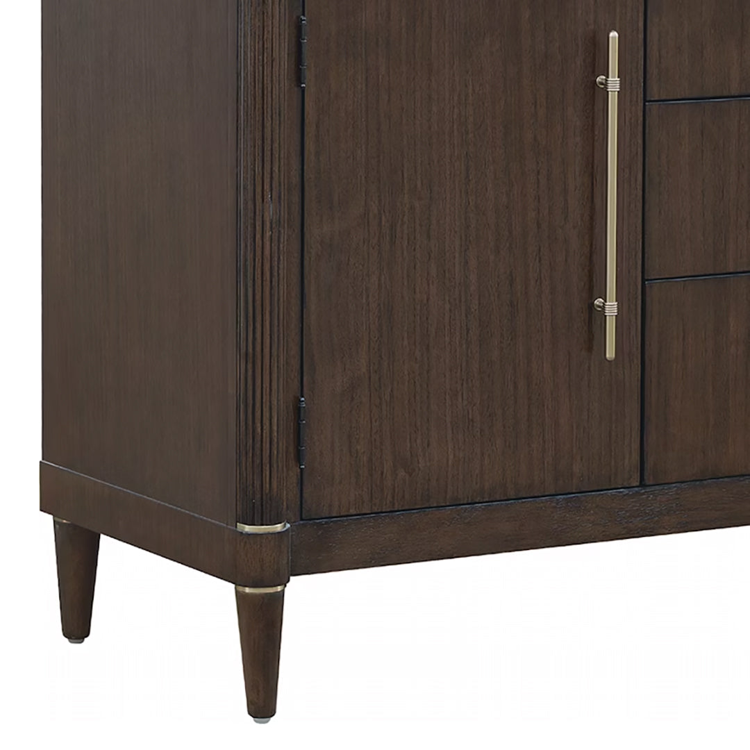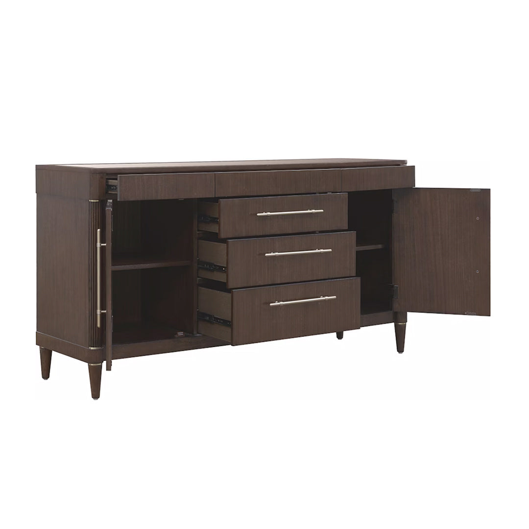 El aparador Asher Park combina un diseño neoclásico con un refinamiento contemporáneo para crear una pieza central funcional para su comedor. Fabricado con madera maciza de caucho y chapa de eucalipto, su rico acabado marrón se realza con postes estriados, patas cónicas y elegantes detalles metálicos. Con seis cajones y vitrinas de dos tamaños diferentes, esta pieza ofrece un almacenamiento flexible para cubiertos, mantelería y artículos esenciales de comedor. Dos puertas se abren para revelar estantes ajustables, lo que facilita adaptar el interior a sus necesidades de servicio o almacenamiento. Con una calificación de calidad "Superior", el aparador Asher Park ofrece una estética personalizada que complementa tanto comedores informales como formales.