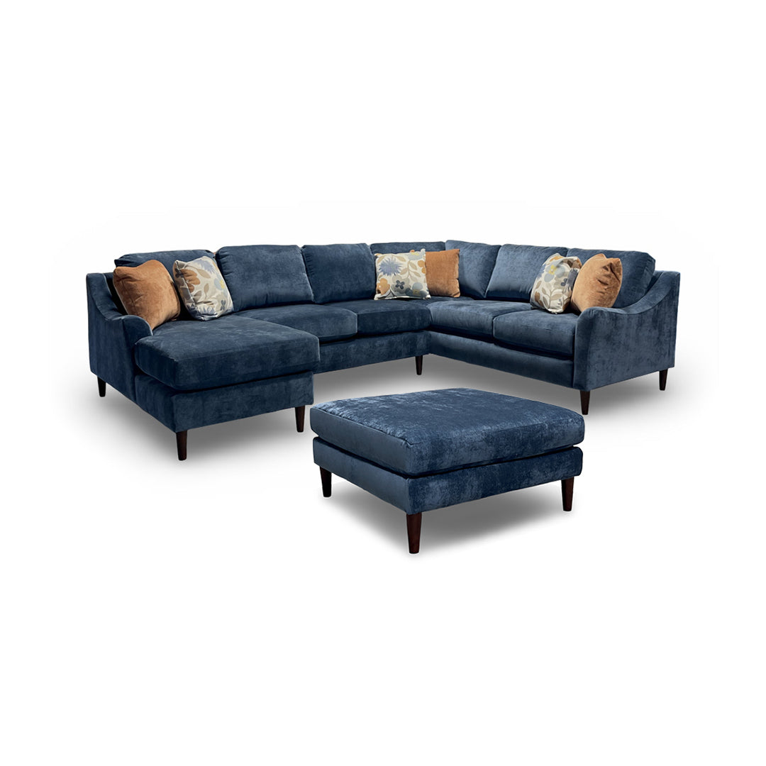 Diseñado para brindar estilo y comodidad, el seccional Bailey le da a su sala un toque minimalista de mediados de siglo. Fabricado en EE. UU., este seccional ofrece un chaise longue a la izquierda que proporciona un amplio espacio de descanso, ideal para relajarse, leer o disfrutar de noches de cine. Tapizado en azul zafiro oscuro, este seccional presenta brazos acampanados y patas cónicas que realzan su silueta ligera y elegante. Detalles de construcción cuidadosos, como ventilaciones en los cojines y cremalleras autorreparables, garantizan una larga durabilidad, mientras que seis cojines decorativos añaden un toque de color. Para mayor versatilidad, combínelo con la otomana a juego opcional, agregando un asiento más flexible o un espacio estable para una bandeja. Con una calificación de calidad "Superior", el seccional Bailey es la pieza central elegante y cómoda que su sala merece.