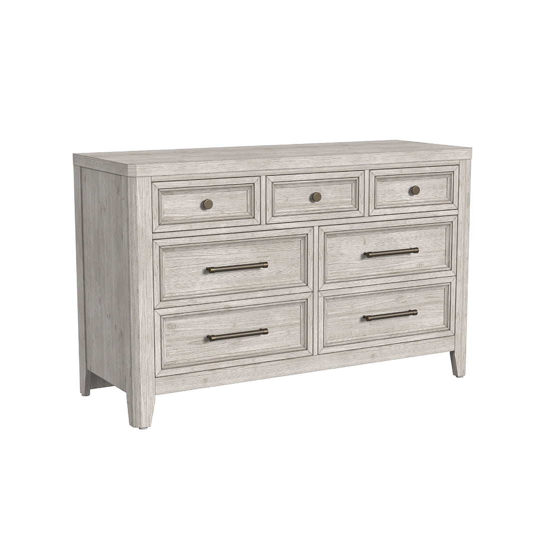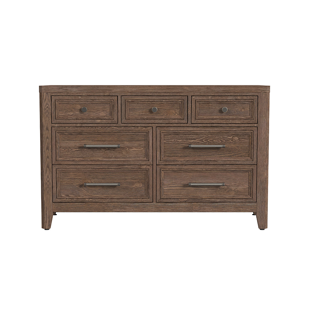 La cómoda Carlson luce un estilo transicional con materiales duraderos. Fabricada con una tapa de madera maciza de abeto con chapas a juego, esta pieza presenta una textura cepillada que aporta profundidad y carácter a su silueta limpia. El diseño incluye siete cajones con marco y ensamblajes de cola de milano inglés tanto en la parte delantera como trasera para una mayor resistencia. Los herrajes de peltre antiguo y los postes biselados realzan el estilo, mientras que los cajones inferiores revestidos de cedro ayudan a proteger la ropa. Con una calificación de calidad "Superior", la cómoda Carlson es una opción inteligente para quienes valoran el estilo clásico y la durabilidad.