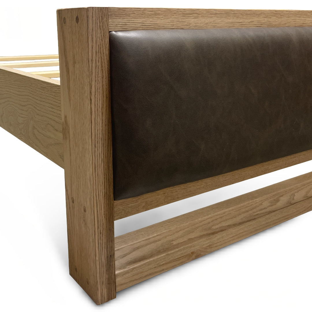La cama Lodge & Loft aporta calidez y modernidad a tu dormitorio. Fabricada con chapa de roble con acabado natural, cuenta con tela de cuero sintético de alto rendimiento en la cabecera y el pie de cama, lo que proporciona una superficie duradera y fácil de limpiar. Sus líneas limpias y su tapizado en marrón intenso logran el equilibrio perfecto entre comodidad y modernidad, convirtiéndola en una opción versátil para una amplia gama de interiores. Con una calificación de calidad "Superior", la cama Lodge & Loft ofrece un contraste visual que crea una apariencia sobria y refinada.