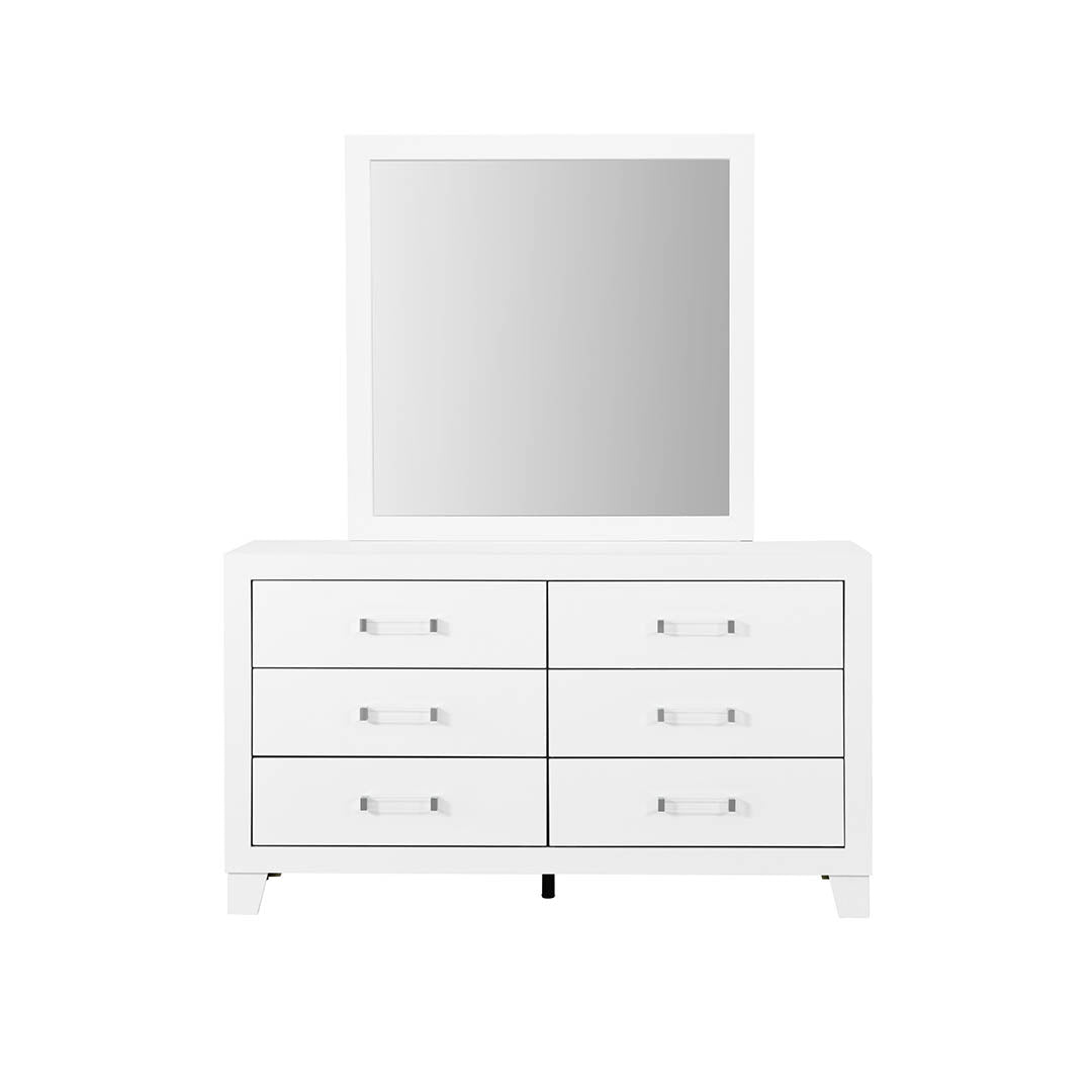 Cree un refugio elegante y sofisticado con el conjunto de dormitorio Luccia, una fusión perfecta de estilo contemporáneo y detalles modernos. En su conjunto, esta colección es ideal para quienes buscan un estilo cohesivo que ilumine su espacio. La cama cuenta con un cabecero tapizado con un elegante marco de espejo. La iluminación LED táctil alrededor del cabecero realza la sensación de lujo. La cómoda complementa la cama con su elegante diseño, tiradores acrílicos y seis cajones, ofreciendo amplio espacio de almacenamiento. El espejo a juego completa la colección con su impecable acabado blanco y líneas limpias. Disponible en nuestras tiendas outlet y con una calificación de "Buena", el conjunto de dormitorio Luccia ofrece un atractivo de alta gama a un precio asequible.