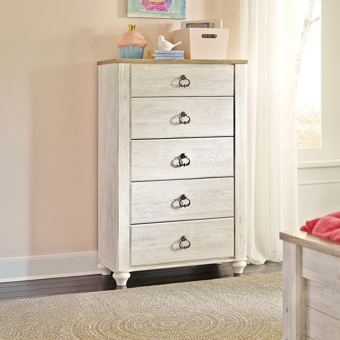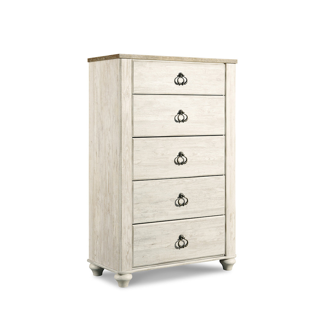 Esta cómoda es la pieza clave para tu casa de campo costera o tu refugio de estilo shabby chic. El acabado encalado de los cajones y laterales es un detalle visualmente atractivo. Combinado con su singular tablero de tablones, su aspecto de madera flotante nos transporta a escapadas playeras.