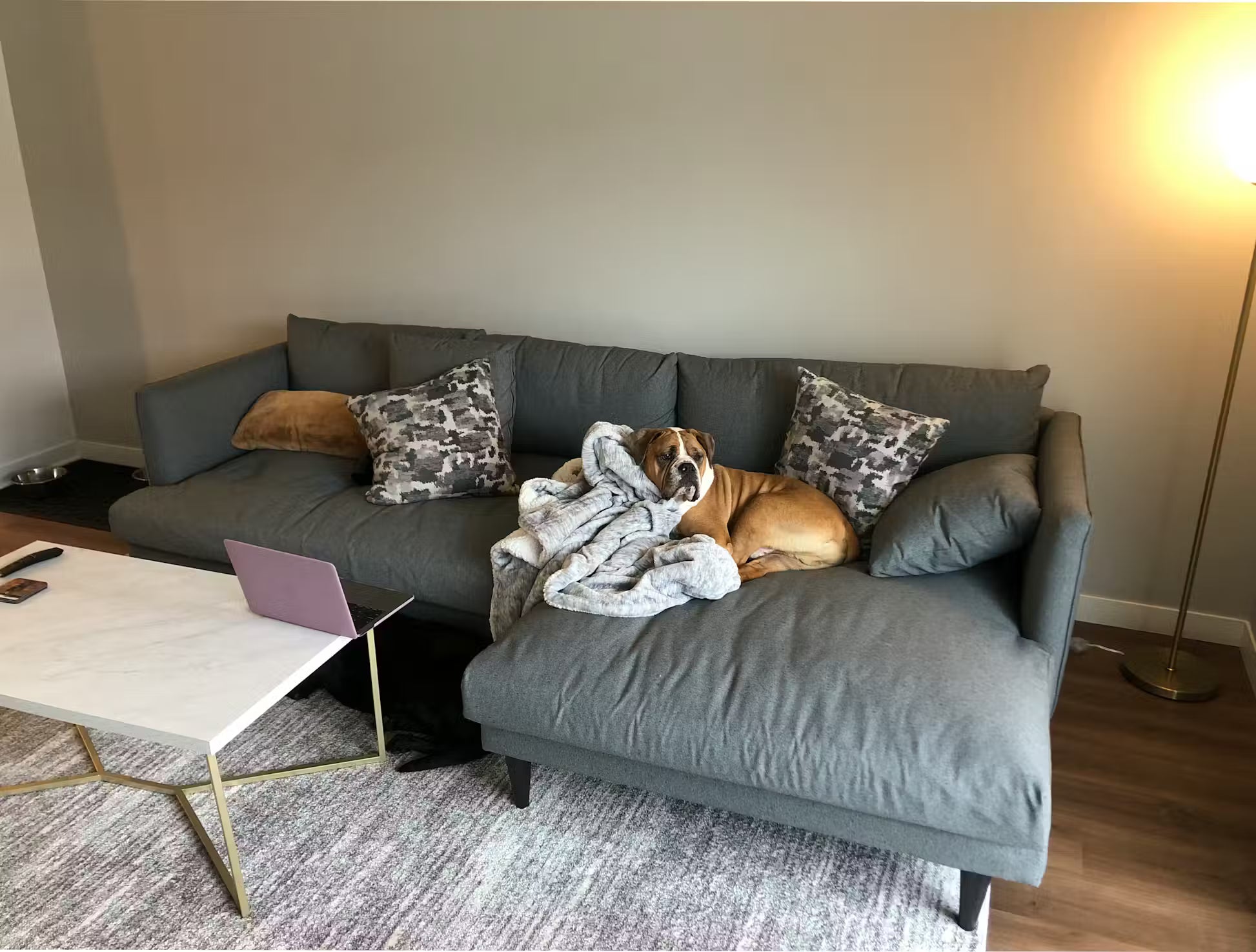 "Love the couch! The pet-proof fabric was a bit rough at first but it's breaking in beautifully. Super easy to vacuum. Definitely would recommend!"