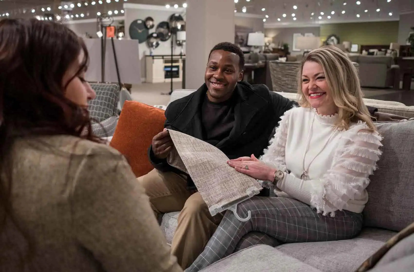 • Verification: Staff shows frame construction, explains spring systems (8-way hand-tied vs sinuous), walks through finish depth