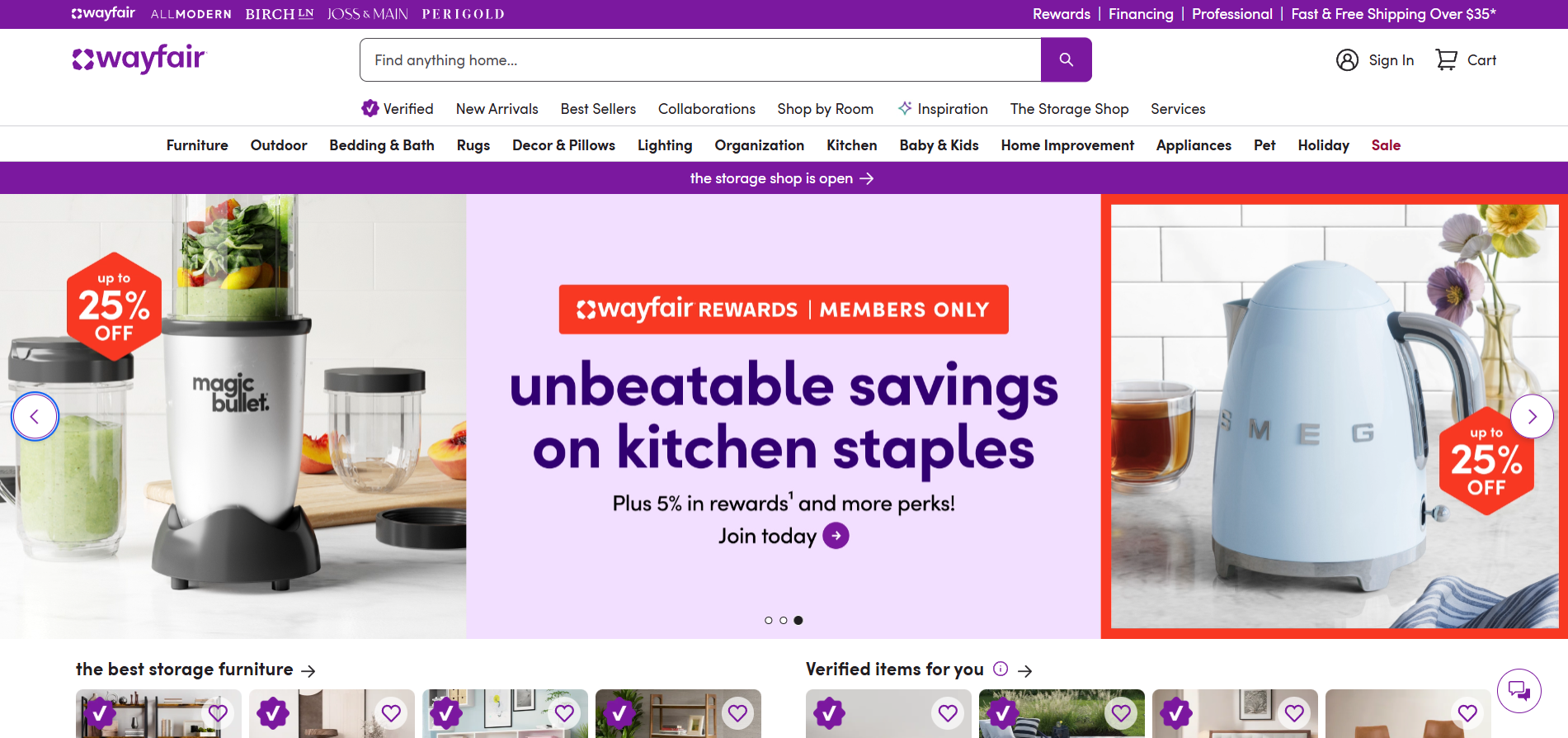 • Wayfair: Massive selection, fast shipping, competitive prices