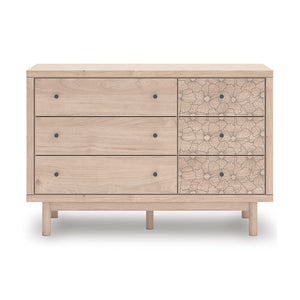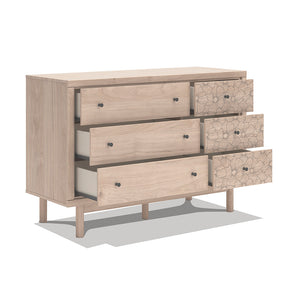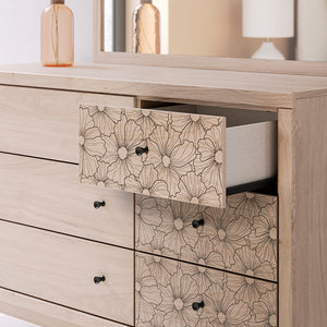 Bring a sense of charm and creativity to your child’s space with the Arloster Dresser. This dresser exudes a free-spirited vibe with the light beige finish over replicated oak grain and floral pattern accents on the right-side drawers. The six smooth-gliding, lined drawers offer ample room for clothing, accessories, or keepsakes. Clean lines and a fresh silhouette make this dresser an easy fit for youth bedrooms or playful guest spaces. Rated at a “Good” quality level, the Arloster Dresser perfectly blends personality and practicality with a whimsical touch.
