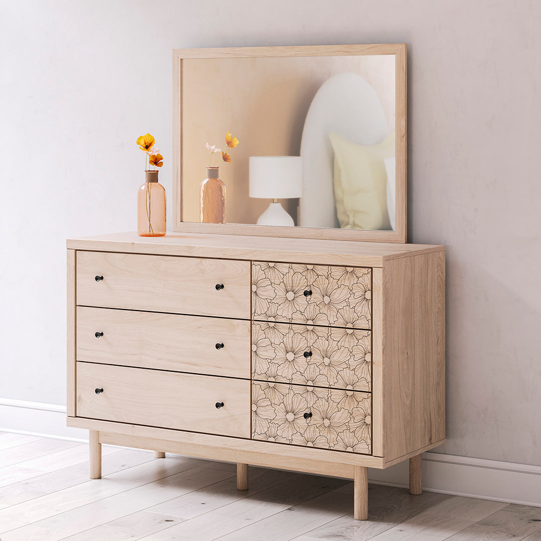 The Arloster Mirror adds a polished finishing touch to any youth or guest bedroom with its smooth beige finish and natural-looking oak grain pattern. Designed for versatility, this mirror can be mounted directly to the coordinating dresser or hung on the wall in either portrait or landscape orientation to suit your space. Its clean-lined frame and light tones offer a stylish and versatile accent that complements a variety of decor styles. Rated at a “Good” quality level, the Arloster Mirror is perfect for completing a room with a fresh, modern look.
