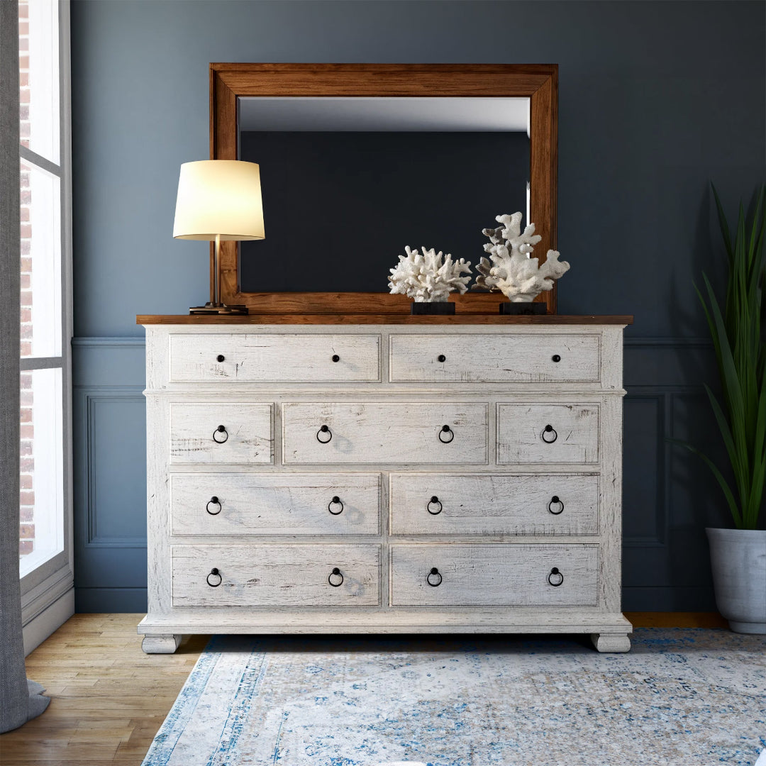 The Belmont is made from Sengon Tiki, a plantation grown wood and it is finished in a Rustic Linen with the tops finished in a rustic espresso to create a two tone effect. The lumber has been left in a rustic state, so when finished, it has the characteristic of century old handmade furniture. It is top coated with lacquer for added protection. All product is sealed and sanded twice to ensure a smooth and beautiful finish. The finish is a 17 step process, all done by hand.