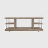 Creativity starts with the City Scape cocktail table. Crafted with excellence using rubberwood solids and split heart white oak veneers, this piece features a Burnished Beige finish. The cocktail table has side shelves suspended by metal tubing for a floating design. A large open center shelf offers plenty of room for extra storage or display items. The casters allow this table to be easily moveable. Built to bring a contemporary touch to the middle of your seating arrangement, the City Scape cocktail table is sure to impress your family and friends.
