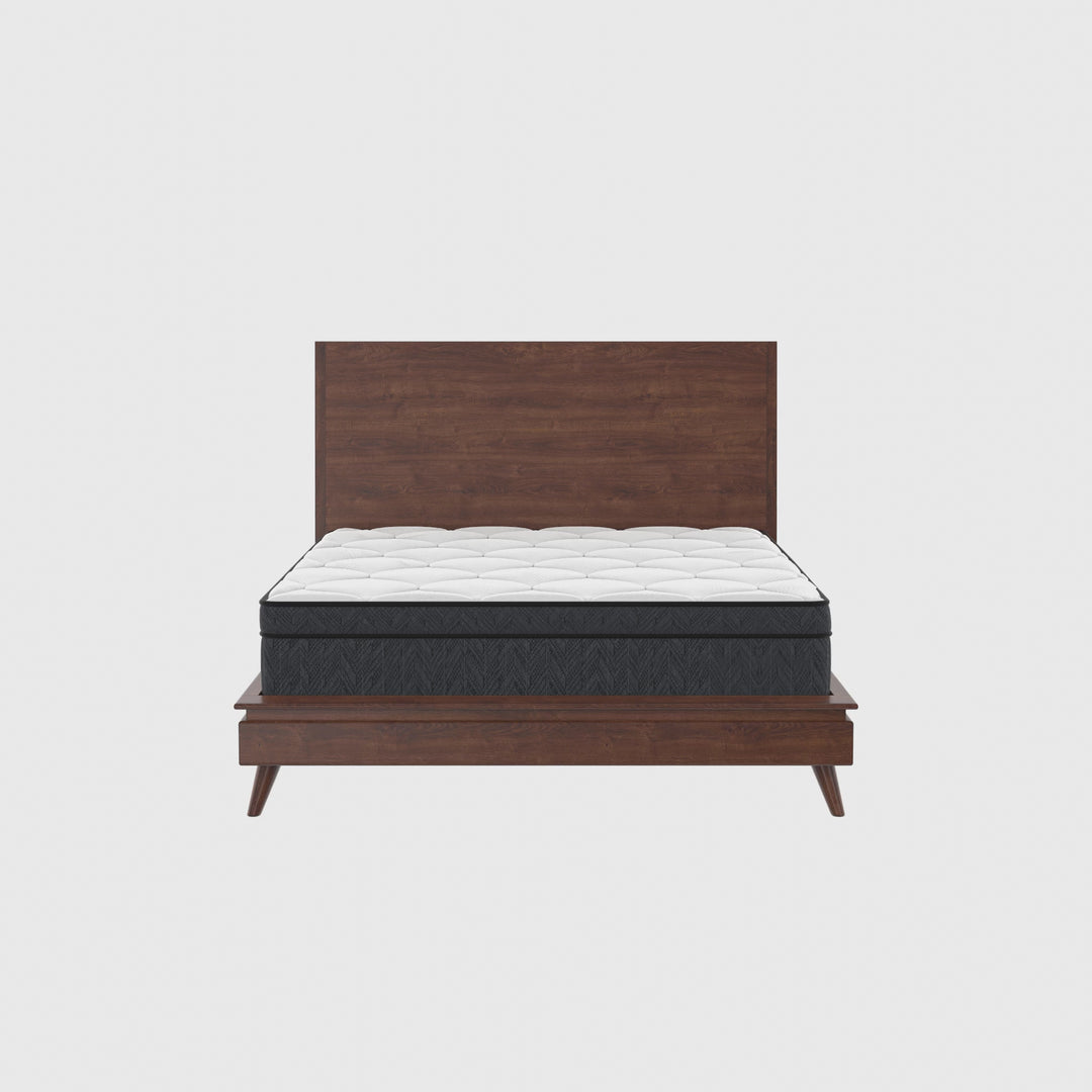 The Cornwell Bed combines mid-century inspiration with modern trends, making it a great start to any bedroom. The medium brown finish enhances the rich textures of the material while also adding warmth and charm. A panel-style headboard and low-profile design give this bed a sleek look, while the platform base eliminates the need for a box spring, offering both convenience and a minimalist feel. Rated at the “Good” quality level, the Cornwell Bed is made for those who appreciate an effortless and sophisticated style.