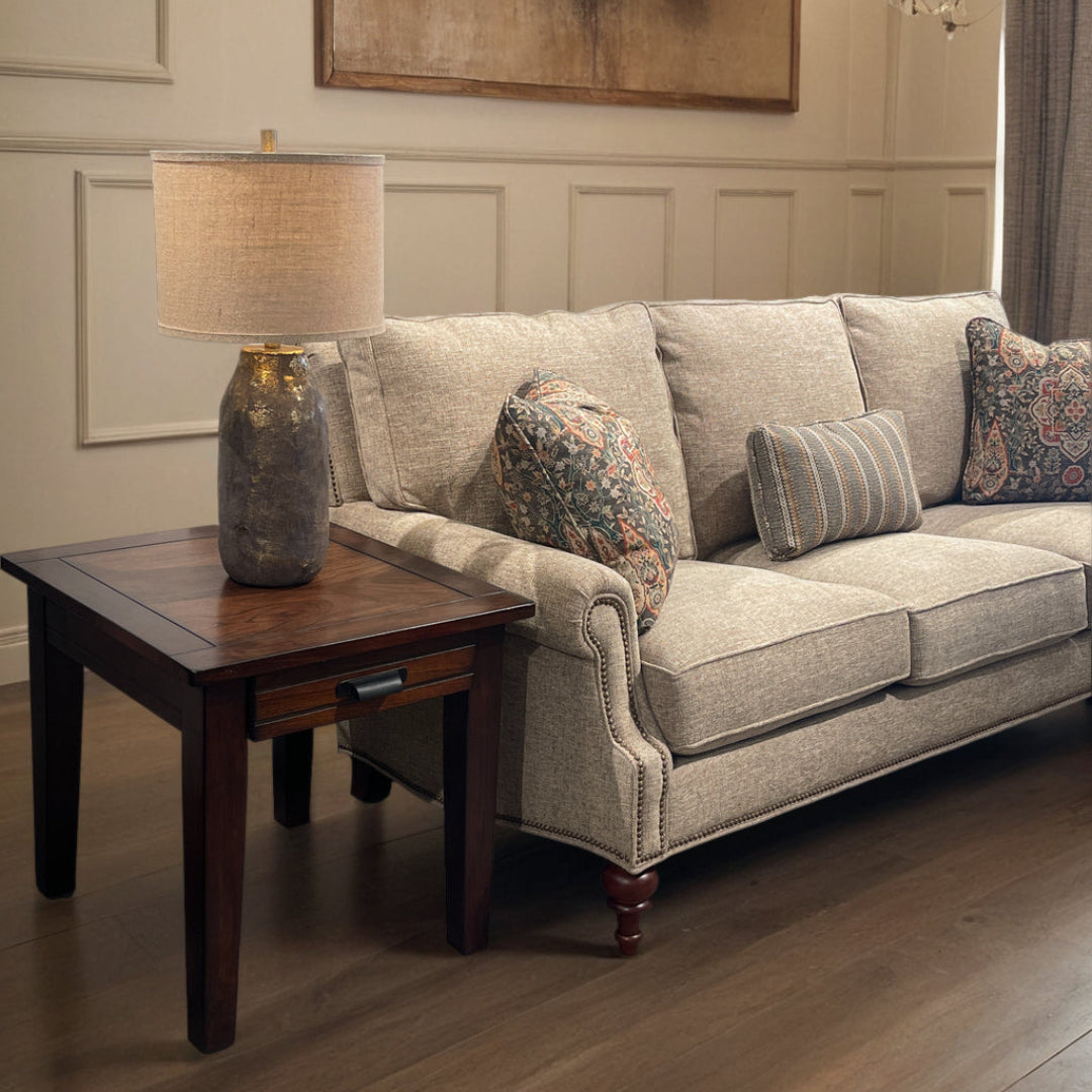 The Dandridge Snakeskin Lamp is a bold statement piece that brings a touch of sophistication to any room. Its bronze ceramic base is inspired by snakeskin, featuring intricate textures that add depth and visual interest. The natural burlap shade balances the striking design with a warm, organic feel while gold accents provide a luxurious finishing touch. Rated at a “Best” quality level, the Dandridge Snakeskin Lamp is an ideal choice for those looking to elevate their space with a unique and eye-catching source of light.