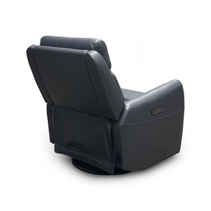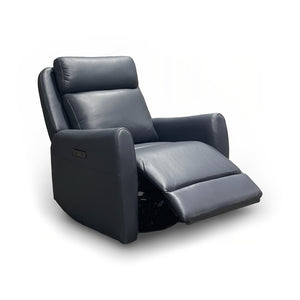 Settle into the sleek sophistication with the Garbo Leather Power Swivel Glider Recliner, where thoughtful design meets everyday comfort. Wrapped in a soft navy blue leather match, this recliner offers a sleek yet inviting presence. Its smooth power recline lets you ease back at the touch of a button, while the swivel glider mechanism brings an extra layer of movement—ideal for gently rocking or easily rotating toward conversation or the perfect TV angle. Padded arms, a full chaise footrest, and a memory foam topper deliver head-to-toe support designed to relieve pressure and promote relaxation. Rated at a “Better” quality level, the Garbo Leather Power Swivel Glider Recliner is a smart choice for those looking for elevated comfort with a stylish edge.