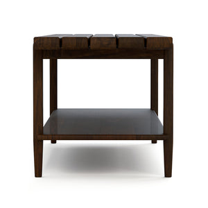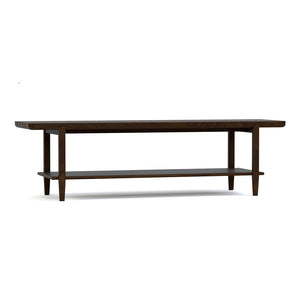 The Hudson Valley Collection looks at traditional Americana and its inspiring artisans through a contemporary lens, updating that warm, familiar style with variations that make it feel both nostalgic and new. Crafted from solid walnut with a rich brown finish, this slatted bed bench combines classic craftsmanship with modern refinement. Its fixed bottom shelf adds practical storage or display space. Featuring soft edges, square posts, and tapered legs, the design achieves a balanced aesthetic that feels both inviting and timeless. Rated at a “Best” quality level, the Hudson Valley Bed Bench is a versatile piece that can serve as a stylish accent at the foot of your bed or a sophisticated addition to your foyer.