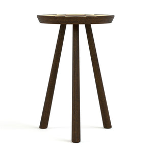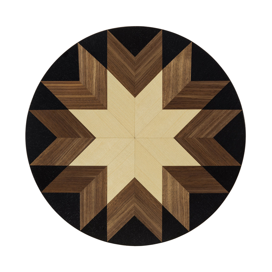 The Hudson Valley Collection looks at traditional Americana and its inspiring artisans through a contemporary lens, updating that warm, familiar style with variations that make it feel both nostalgic and new. The drink table is a compact work of art, designed to add a striking yet subtle accent to your living space. Its round top features an intricate inlay of maple, walnut, and ebony, forming a geometric motif inspired by traditional American quilt patterns. The solid walnut base with tripod legs gives the piece a sculptural quality. A shorter height version is also available, perfect for creating a layered look. Rated at a “Best” quality level, the Hudson Valley Drink Table is both a conversation piece and a refined everyday essential.