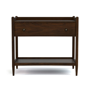 The Hudson Valley Collection looks at traditional Americana and its inspiring artisans through a contemporary lens, updating that warm, familiar style with variations that make it feel both nostalgic and new. Made from solid walnut, the nightstand features elegant inward curve that adds subtle sophistication to its sleek profile. A gallery top offers a stylish yet functional surface, while the one drawer with iron gray hardware provides convenient storage for essentials. The fixed open bottom shelf enhances versatility, perfect for displaying books or decorative accents. Rated at a “Best” quality level, the Hudson Valley Nightstand brings understated elegance and practicality to your bedroom.