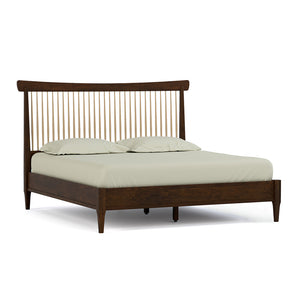 The Hudson Valley Collection looks at traditional Americana and its inspiring artisans through a contemporary lens, updating that warm, familiar style with variations that make it feel both nostalgic and new. The spindle king bed showcases exceptional craftsmanship with a solid walnut frame enriched in a dark brown finish. The maple spindles create a crisp, playful contrast of tones, enhancing the bed’s visual appeal. A subtly curved headboard paired with square posts brings a balanced look that feels timeless yet refreshingly modern. Rated at a “Best” quality level, the Hudson Valley Spindle Bed is a striking centerpiece to complete your bedroom sanctuary.