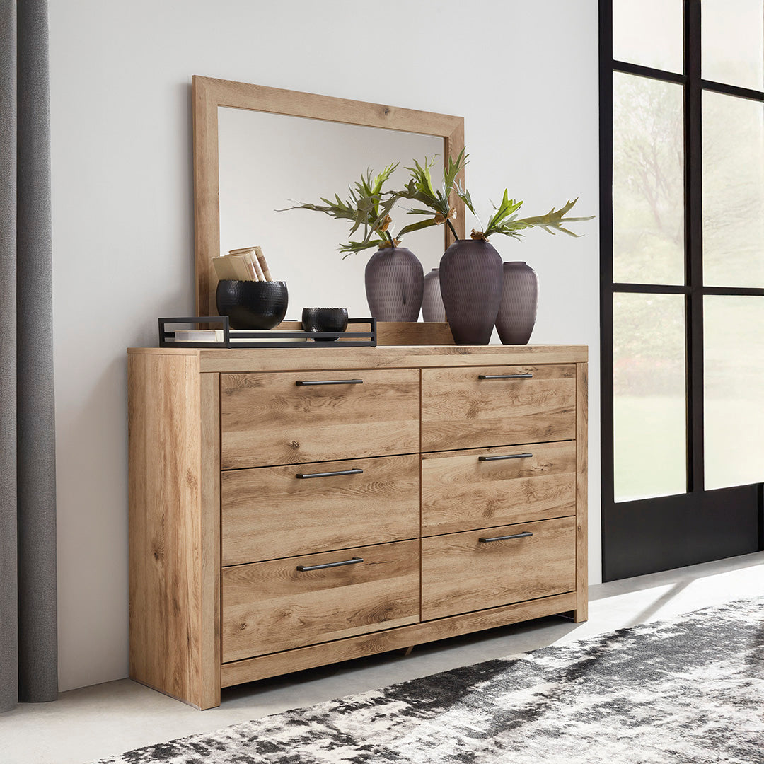 Inspired by natural beauty, refined to perfection. This mirror brings cozy outdoor vibes to your bedroom with its warm and inviting golden rustic finish. Simple and streamlined, this versatile piece can be hung horizontally or vertically.