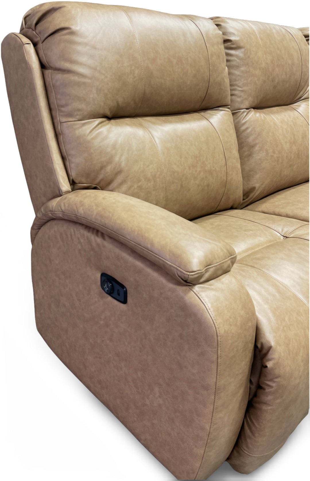Experience refined relaxation with the Maverly Power Reclining Sofa. Made in the USA, this stylish living room centerpiece blends timeless design with thoughtful comfort features. Dual reclining paired with power tilt headrests let you recline with ease, regardless which side you sit on. The side control panel features an easy to use Comfort Dial that effortlessly finds the best lounging position, tailored to your liking. Built on a solid hardwood frame, this sofa also features Performa-Weave seat cushions—engineered for lasting durability, cooling comfort, and everyday support. Slim, padded arms and a built-in USB charging port add convenience without sacrificing style. Rated at a “Better” quality level, the Maverly Power Reclining Sofa is the perfect combination of sophistication, comfort, and performance.