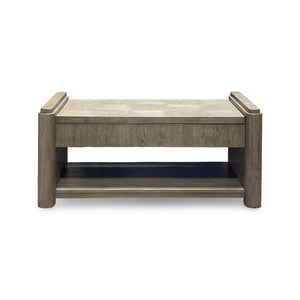 Pairing contemporary sophistication with thoughtful details, the Southerland Point Sliding Cocktail Table brings versatility to your living room. The innovative sliding top, designed with a striking parquetry pattern, moves smoothly in both directions to reveal a hidden storage compartment beneath. The sliding top makes game nights and casual meals more comfortable while providing a stylish solution for keeping essentials like remotes, coasters, or reading materials tucked away. Framed in clean lines and finished in a sleek light gray, this cocktail table is set on discreet casters, making it easy to move for entertaining or reclining. Rated at a “Better” quality level, the Southerland Point Sliding Cocktail Table is a stylish solution that adjusts to your lifestyle.