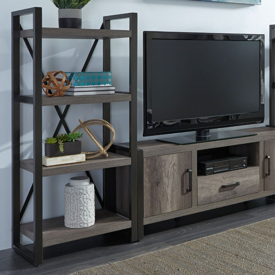 Elevate your space with the sleek Tanners Creek Pier Display Tower featuring an open shelf design. Perfect for showcasing your favorite items, it seamlessly blends into any room. With ample space and easy access, it's ideal for displaying books, collectibles, or plants. Maximize vertical space and elevate your interior with this stylish and versatile piece. Pair with the coordinating tv stand to complete the set.