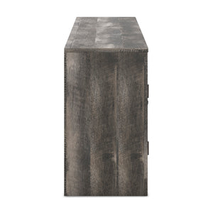 With its charming style and smart storage design, the Wynnlow TV Stand is a favorite for casual living spaces. At 63 inches wide, it comfortably supports larger televisions while offering two spacious cabinets and an adjustable center shelf to keep your media essentials tidy. Wire management cutouts at the back keep cords neatly concealed, so your space stays clean and clutter-free. The rustic gray finish with replicated oak grain brings an inviting feel that blends effortlessly into farmhouse or vintage-inspired interiors. Found in our outlet locations and rated at a “Good” quality level, the Wynnlow TV Stand delivers stylish practicality at a great value.